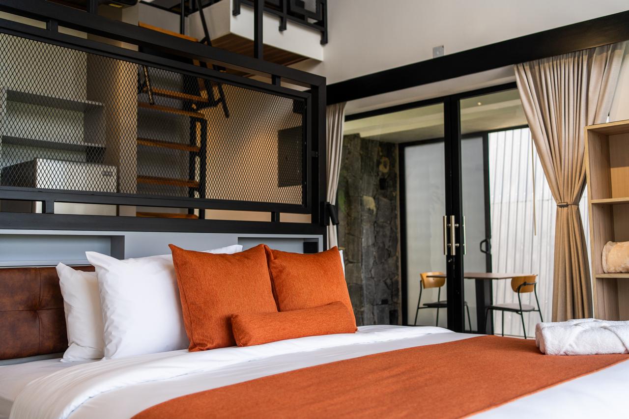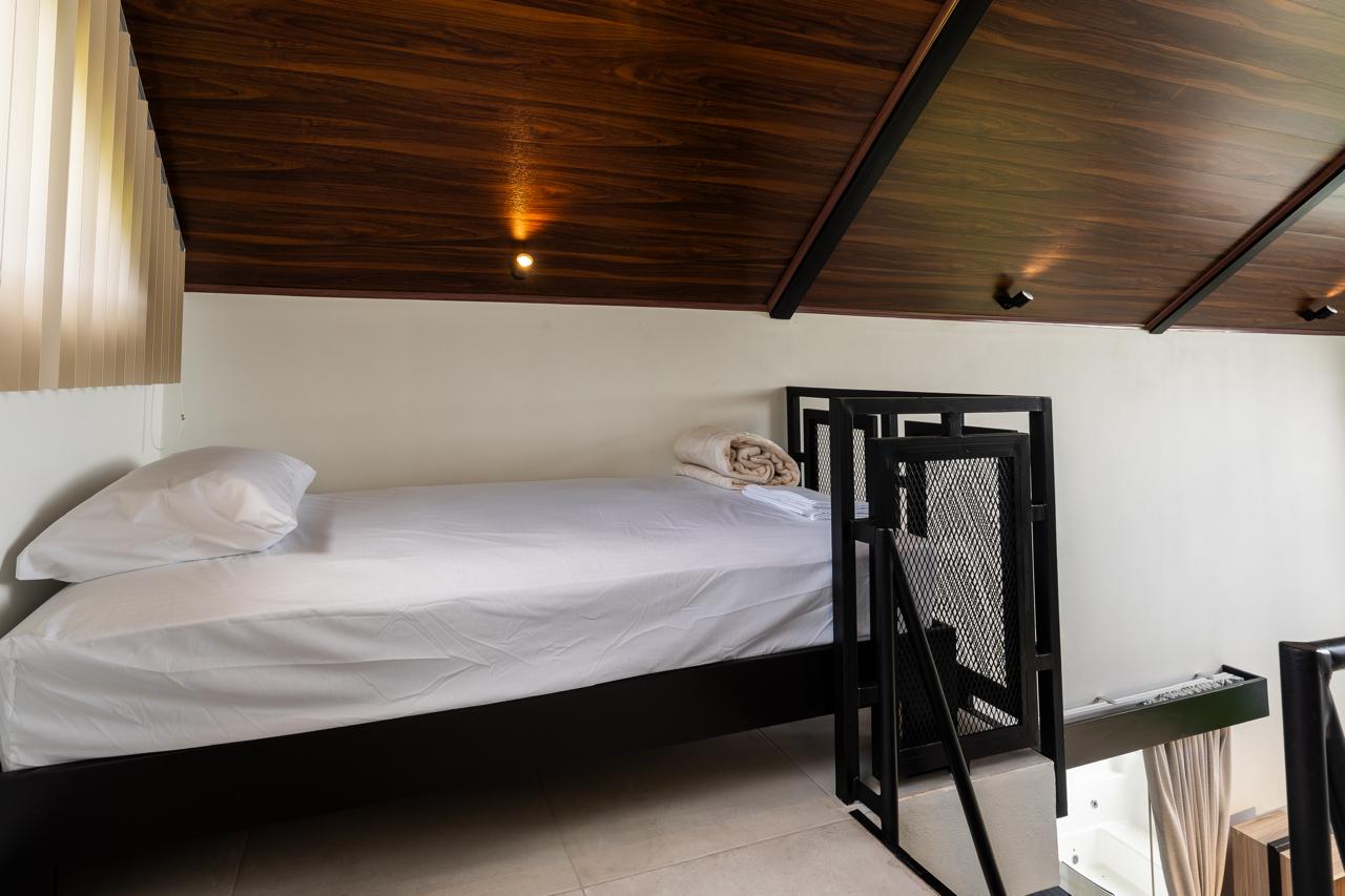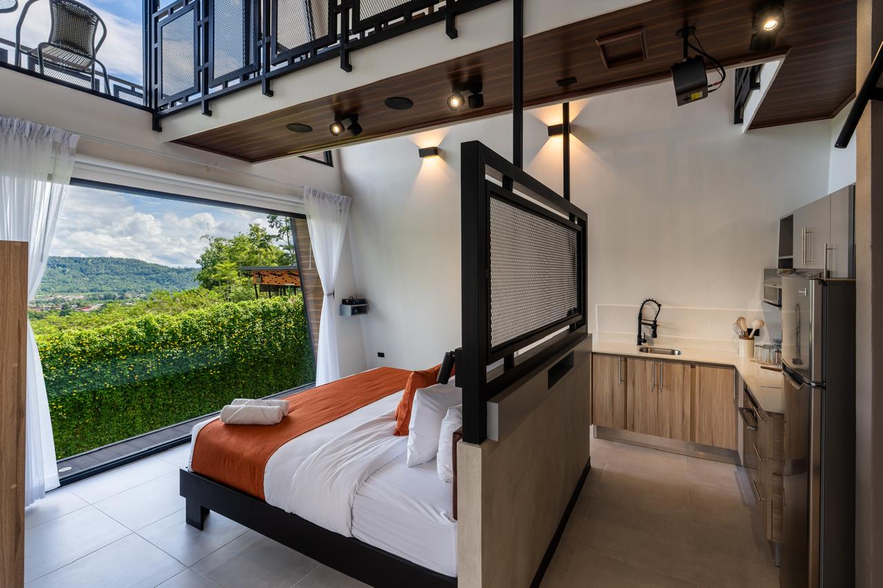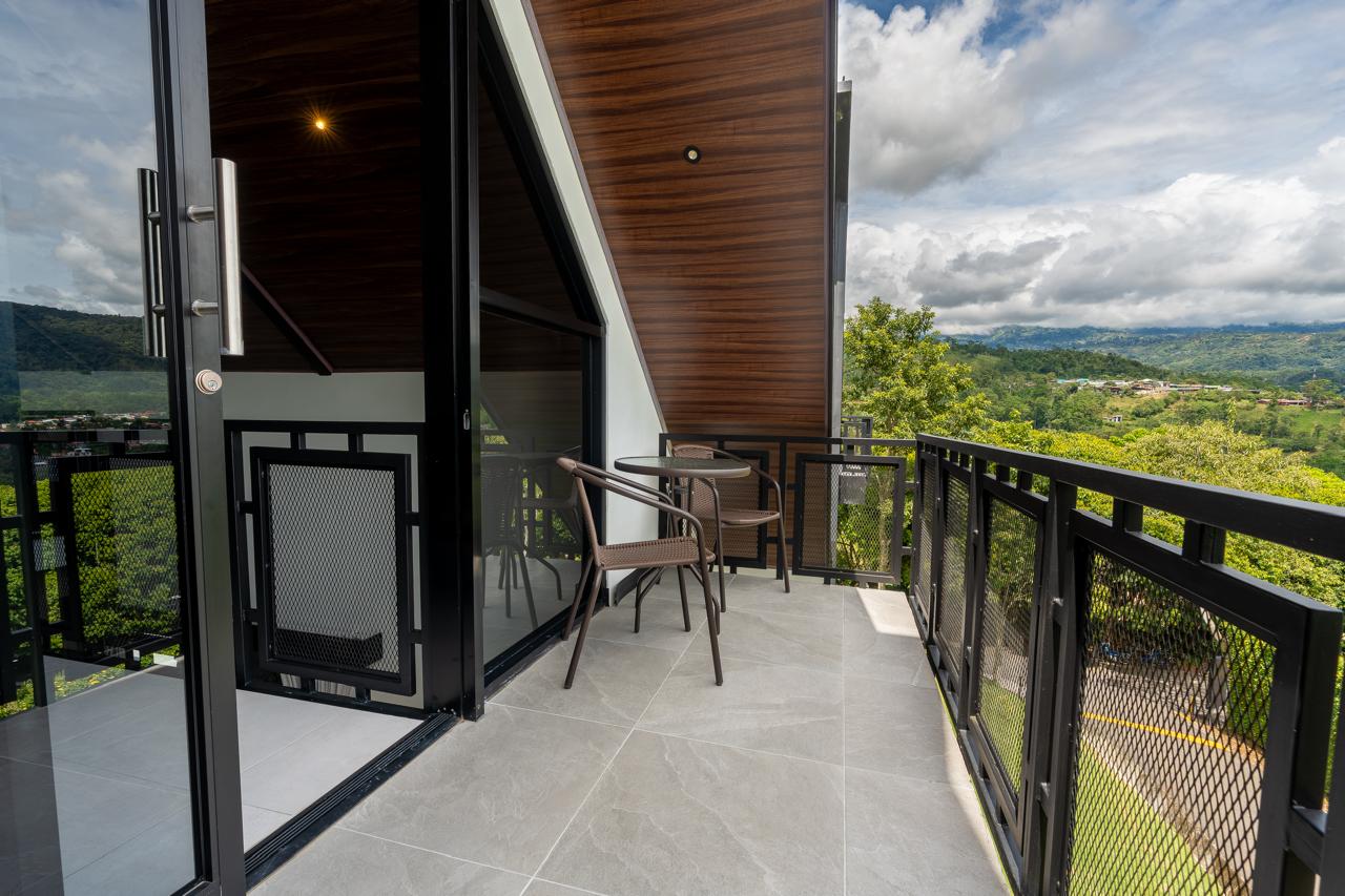 3 Chalets Deluxe Plus, con un diseño arquitectónico fuera de lo convencional, con capacidad de hasta 5 personas; equipados con: 1 cama king y 3 camas individuales. Cada unidad cuenta con aire acondicionado, jacuzzi, proyector, cocina totalmente equipada, un sistema de control inteligente mediante Alexa y un balcón con las mejores vistas al volcán y al valle de Turrialba, perfectos para una estancia de lujo en un entorno natural incomparable. El hospedaje incluye desayuno a la carta.