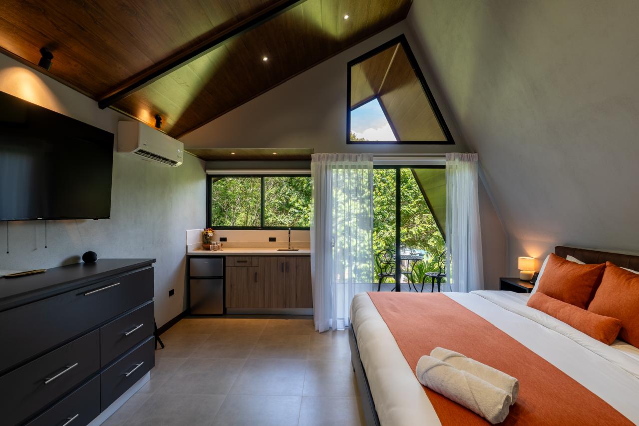 2 Chalets Deluxe con un diseño sofisticado, ideales para 1 o 2 personas; equipados con: cama king y aire acondicionado. Cada unidad cuenta con pantalla de entretenimiento, mueble multifuncional con lavabo y mini bar, y un sistema de control inteligente mediante Alexa. Además de una terraza con vistas encantadoras. El hospedaje incluye desayuno a la carta.